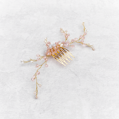 - wianek na delikatnym grzebyku w kolorze złota, dzięki czemu łatwo można go wykorzystać do wielu fryzur ślubnych i okolicznościowych (najlepiej sprawdzi się jako ozdoba koków i upięć)