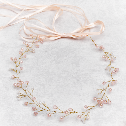 - wykończony różowymi kryształkami i beżowymi perełkami oraz aksamitną tasiemką
